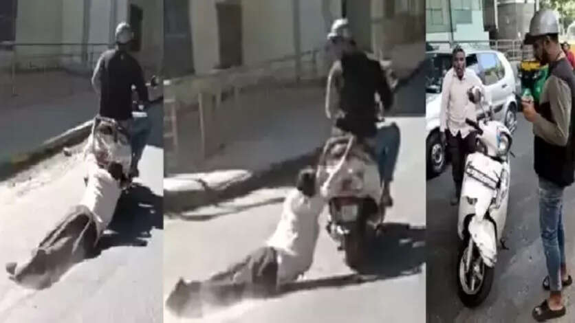 அதன்பின்பு, மற்றொரு பைக்கில் வந்த நபர் ஒருவர் மற்றும் ஆட்டோவில் வந்தவர் உதவியுடன் அந்த பைக் நிறுத்தப்பட்டது. பைக்கில் இழுத்து செல்லப்பட்ட நபரின் ஆடைகள் கிழிந்து இருந்தன. அவர் மெதுவாக எழுந்து வந்துள்ளார். இது தொடர்பான வீடியோ வைரலானது. இதனை தொடர்ந்து போலீசார் விசாரணை செய்து வருகின்றனர்.