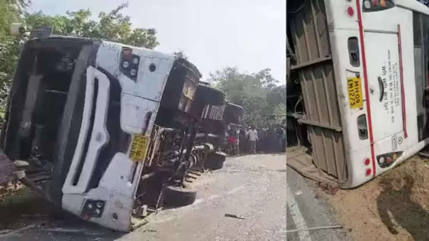 நாக்பூரில் இருந்து கோண்டியா பகுதிக்கு 35 பயணிகளுடன் அரசு பஸ் புறப்பட்டு சென்று கொண்டிருந்தது. காஜ்ர் என்ற கிராமம் அருகே வந்த போது, எதிர்பாராத விதமாக பைக் ஒன்று சாலையில் குறுக்கிட்டதாக தெரிகிறது. பைக் மீது மோதாமல் இருக்க டிரைவர் பஸ்சை திருப்பி உள்ளார்.