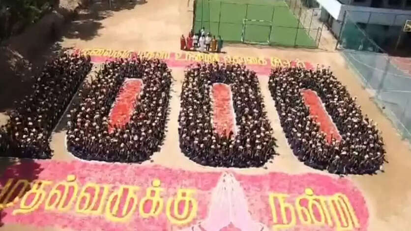 தனியார் பள்ளி மாணவர்கள் ஆயிரம் பேர் ஒன்று திரண்டு கையில் பூங்கொத்துடன் நன்றி தெரிவிக்கும் வீடியோ சமூக வலைதளத்தில் வேகமாக பரவி வருகிறது.