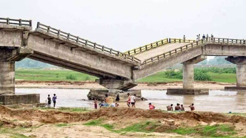 முதல்வரின் நபார்டு வங்கித் திட்டத்தின் கீழ் ரூ.13 கோடி செலவில் கட்டப்பட்ட பாலம் திறக்கப்படுவதற்கு முன்பே இடிந்து விழுந்தது பீகார் அரசியலில் மேலும் பரபரப்பை ஏற்படுத்தியுள்ளது.