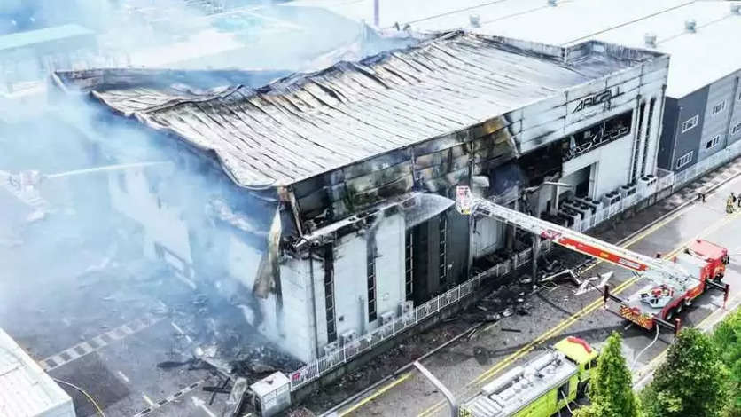 தென்கொரிய நாட்டின் ஜியோங்கி மாகாணம் ஹவாஸ்சோங் நகரில் லித்தியம் பேட்டரி தயாரிக்கும் தொழிற்சாலை உள்ளது. இந்த தொழிற்சாலையில் நேற்று 67 தொழிலாளர்கள் வேலை செய்துகொண்டிருந்தனர். அப்போது, அந்த தொழிற்சாலையில் திடீரென பயங்கர தீ விபத்து ஏற்பட்டது. இதில் தொழிற்சாலையில் வேலை செய்துகொண்டிருந்த ஊழியர்கள் பலரும் சிக்கிக்கொண்டனர். இந்த விபத்து குறித்து தகவலறிந்த தீயணைப்பு மற்றும் மீட்புக்குழுவினர் சம்பவ இடத்திற்கு விரைந்து வந்தனர். தொழிற்சாலையில் பற்றி எரிந்த தீயை போராடி அணைத்தனர்.