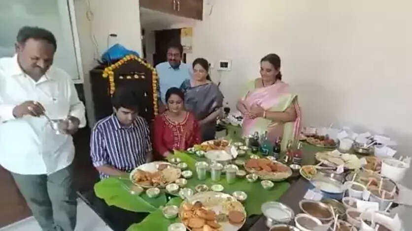 விருந்தோம்பலுக்கு பெயர் பெற்றவர்கள் தமிழர்கள் என்பது அனைவருக்கும் தெரிந்ததே. அதே அளவுக்கு விருந்தினர்களை உபசரிப்பதில் ஆந்திராவின் கிழக்கு மற்றும் மேற்கு கோதாவரி மாவட்டங்களை சேர்ந்தவர்கள் முன்னிலையில் இருப்பார்கள். அந்த வகையில் புது மாப்பிள்ளைக்கு மாமியர் பல வகையான உணவுகளை பரிமாறி அசத்தியுள்ளார்.