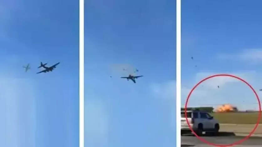 அமெரிக்காவின் டெக்சாஸ் மாகாணத்தில் டல்லாஸ் நகரில் விமான படை சார்பில் இரண்டாம் உலக போர் காலத்தின் விமானங்கள் அடங்கிய சாகச நிகழ்ச்சிகள் நடைபெற்றன. இதில் பங்கேற்ற, பெரிய ரக போயிங் பி-17 குண்டுகள் வீசும் விமானம் மற்றும் ஒரு சிறிய ரக பெல் பி-63 கிங்கோப்ரா என்ற விமானமும் விண்ணில் பறந்து சென்றன. இந்த இரு விமானங்களும் குறிப்பிட்ட அடி உயரத்தில் பறந்து சென்றபோது, நடுவானில் திடீரென மோதி விபத்தில் சிக்கின.