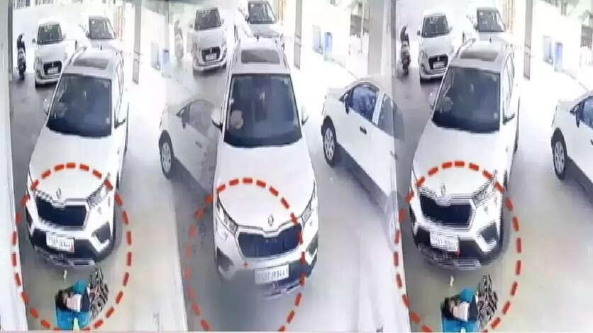 வேலை செய்யும் இடத்தில் நிழலில்லாததால், குழந்தையை பக்கத்து அடுக்குமாடி குடியிருப்பு வாகன நிறுத்துமிடத்தில் தாய் கவிதா படுக்க வைத்துவிட்டு, பின்னர் கட்டுமான பணியில் ஈடுபட்டார். ஆனால் அதே அடுக்குமாடி குடியிருப்பில் வசிக்கும் ஹரிராம கிருஷ்ணா என்பவர் தனக்கு ஒதுக்கப்பட்ட பார்க்கிங் இடத்தில் குழந்தை கிடப்பதை கவனிக்காமல் காரை நிறுத்த முயன்றார்.