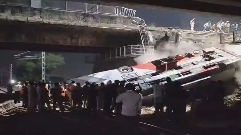 அதிகாலை நடந்த கோர விபத்து : ரயில்வே தண்டவாளத்தில் பேருந்து கவிழ்ந்து 4 பேர் பலி! ரயில் வராததால் பெரும் உயிர் சேதம் தவிர்ப்பு!