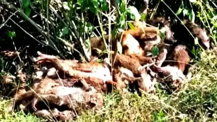 ஆந்திர மாநிலம் ஸ்ரீகாகுளம் மாவட்டத்தில் உள்ள சிலகம் கிராமத்திற்கு அருகே வனப்பகுதி உள்ளது. இந்த பகுதியிலிருந்து துர்நாற்றம் வீசியதை அடுத்து கிராம மக்கள் அங்கு சென்று பார்த்த போது குவியலாக குரங்குகள் கொல்லப்பட்டு இறந்து கிடந்துள்ளன. இதைக் கண்டு அதிர்ச்சியடைந்த அப்பகுதி மக்கள் உடனடியாக இதுகுறித்து வனத்துறையினருக்கு தகவல் கொடுத்தனர்.