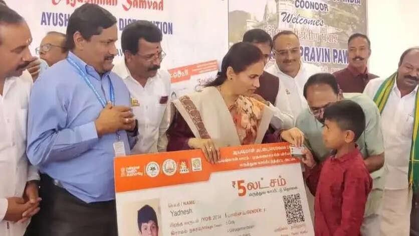 தமிழ்நாட்டில் 53 லட்சம் ஆயுஷ்மான் அட்டைகள் வழங்கப்பட்டுள்ளது. தமிழ்நாட்டில் 1,154 தனியார் மருத்துவமனைகள் உட்பட 2,084 மருத்துவமனைகள் இந்த திட்டத்தில் இணைக்கப்பட்டுள்ளது. இதுவரை இத்திட்டத்தின் கீழ் 96.25 லட்சம் பேருக்கு 6 ஆயிரம் கோடி ரூபாய் வரை விடுவிக்கப்பட்டுள்ளது. இத்திட்டம் அனைவருக்கும் பயனளிக்க வேண்டும் என்பதே அதன் அடிப்படை நோக்கம்” என்று தெரிவித்தார்.