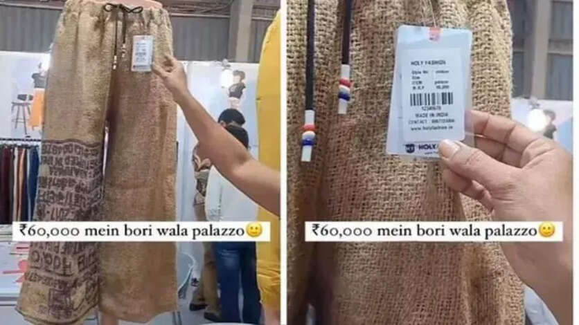 அதை வாங்கப் போட்டி போடுகின்றனர். அந்த வகையில், இன்ஸ்டாகிராம் பக்கத்தில் ஒரு வீடியோ வைரலாகியுள்ளது.அதில்,சாக்குப் பை போன்ற தோன்றமுடைய, சாக்கு பலாஸ்ஸோவின்( சாக்கு பை பேண்ட்) விலை ரூ. 60,000 ஆகும். சாக்குகளில் இருந்து தயாரிக்கப்பட்டுள்ளது இதன் சிறப்பாகும்.