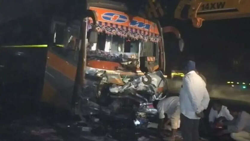 நவ்சாரி என்ற பகுதியில் அகமதாபாத் - மும்பை நெடுஞ்சாலையில் சென்று கொண்டிருந்த சொகுசு பேருந்தும், காரும் நேருக்கு நேர் மோதி விபத்து ஏற்பட்டது. இந்த விபத்தில் கார் முற்றிலும் உருக்குலைந்து போனது.