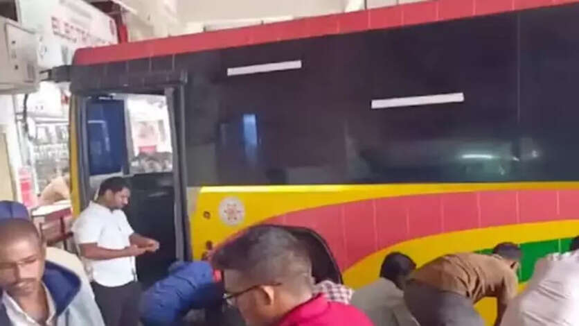 VIDEO | At least three people were killed, including a woman and several others injured when a state transport bus rammed into a platform at a bus stand in Vijaywada, Andhra Pradesh, yesterday. The incident was caught on CCTV.