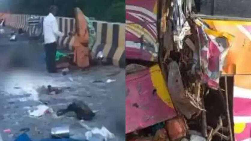 ராஜஸ்தான் மாநிலம் புஷ்கர் நகரில் இருந்து உத்தரபிரதேச மாநிலம் விர்ந்தவன் நகருக்கு இன்று அதிகாலை பேருந்து ஒன்று சென்று கொண்டிருந்தது. அந்த பேருந்தில் 25-க்கும் மேற்பட்டோர் பயணம் செய்தனர். அதிகாலை 4.30 மணியளவில் ராஜஸ்தானின் பாரத்பூர் பகுதியில் உள்ள தேசிய நெடுஞ்சாலை பாலத்தில் சென்றபோது திடீரென பேருந்து பழுதாகி நின்றது.