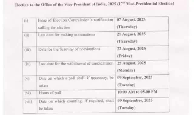 ஜூலை 21 அன்று துணை ஜனாதிபதி பதவியில் இருந்து ஜக்தீப் தன்கர் ராஜினாமா செய்ததைத் தொடர்ந்து இந்திய துணை ஜனாதிபதி தேர்தலுக்கான தேதி வெளியாகியுள்ளது