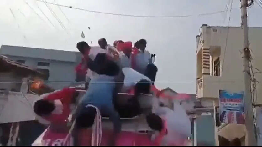 #WATCH | #Telangana Minister and BRS leader #KTRRao fell down from a vehicle during an election rally in #Armoor, #Nizamabad district. pic.twitter.com/60WS4qHgoC