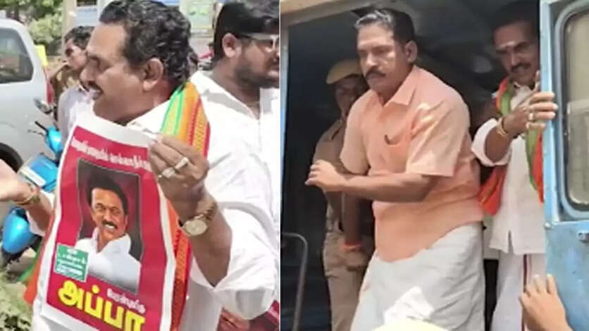 மயிலாடுதுறை பழைய ஸ்டேட் பேங்க் சாலையில் உள்ள டாஸ்மாக் மதுபான கடையில், முதல்வரின் உருவப்படம் பதிக்கப்பட்ட அப்பா ஸ்டிக்கரை ஒட்ட முயன்ற பாஜகவினரை காவல் துறையினர் தடுத்து நிறுத்தினர்.