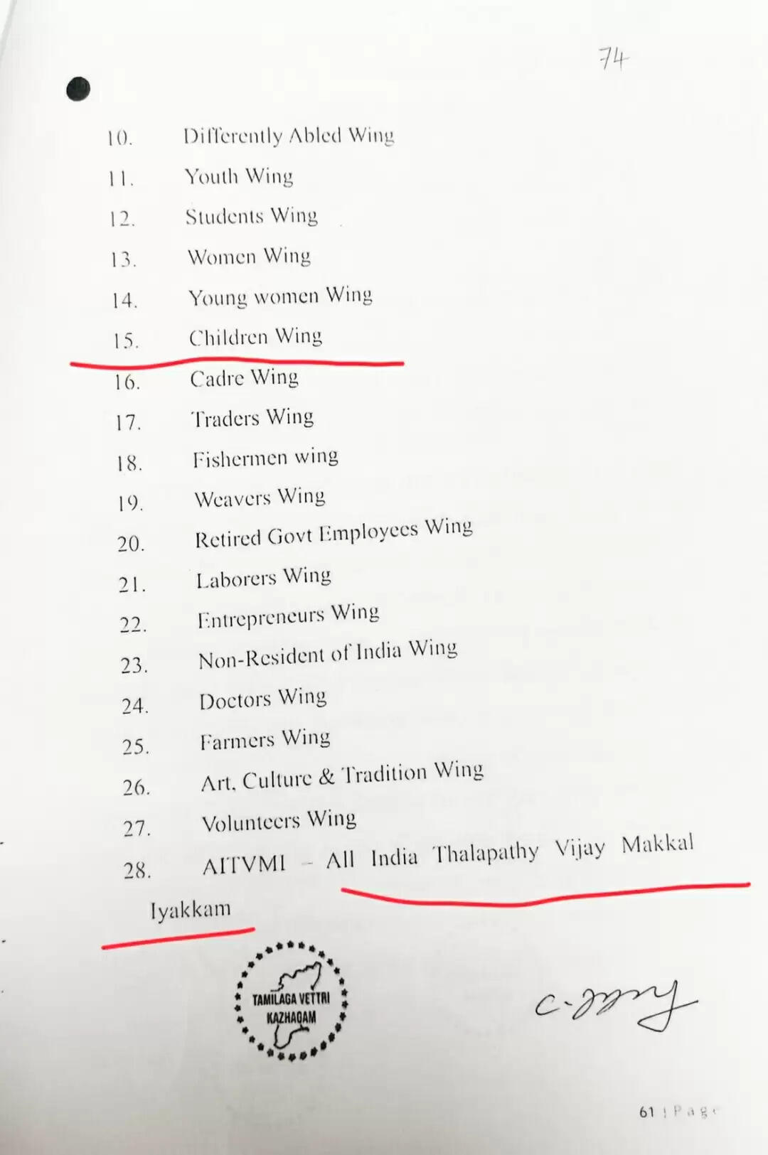 தமிழக வெற்றிக் கழகத்தில் உருவாக்கப்பட்டுள்ள அணிகள் குறித்து பட்டியல் வெளியாகி உள்ளது.