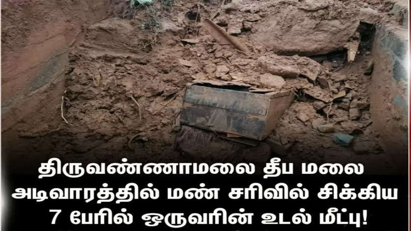 இந்நிலையில், திருவண்ணாமலை தீப மலை அடிவாரத்தில் மண் சரிவில் சிக்கிய 7 பேரில் ஒருவரின் உடல் மீட்கப்பட்டுள்ளது.மீட்பு பணி தொடர்ந்து நடைபெற்று வருகிறது