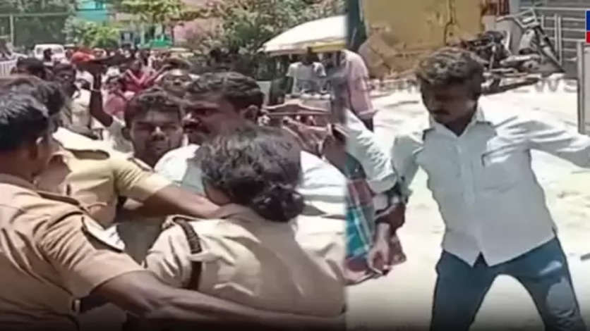 போராட்டத்தில் பெண் DSP-யின் தலைமுடியை பிடித்து இழுத்து தாக்கிய போராட்டக்காரர்களால் பரபரப்பு ஏற்பட்டள்ளது. மறியலில் ஈடுபட முயன்றவர்களை காவல்துறையினர் தடுத்து நிறுத்தியபோது ஏற்பட்ட தள்ளுமுள்ளு சம்பவத்தில் பரபரப்பு..