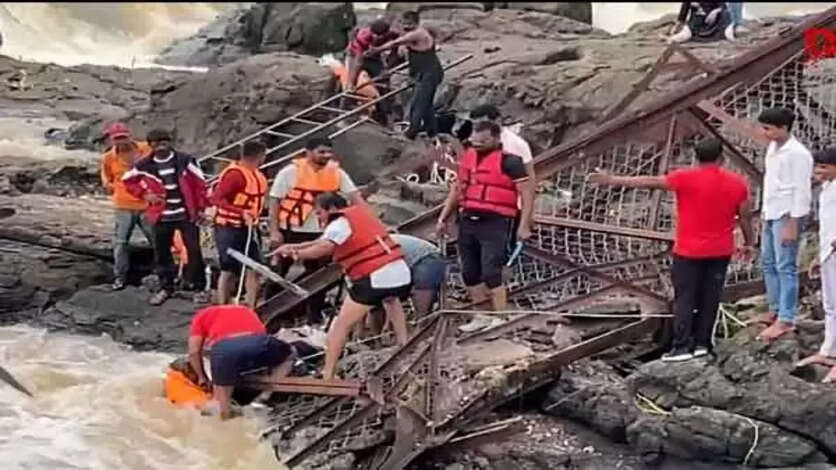 புனே ஆற்றின் மீது கட்டப்பட்ட பழைய பாலம் இடிந்து விழுந்தது : நீரில் மூழ்கி 6 பேர் உயிரிழப்பு..!