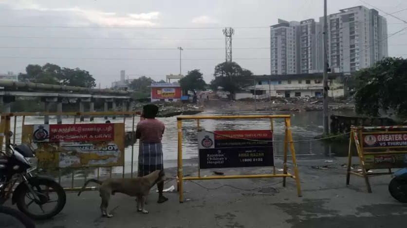பூந்தமல்லி சாலைக்குச் செல்லும் தரைப்பாலத்தை தண்ணீர் மூழ்கடித்துள்ளதால், வண்டிகள் செல்லத் தடைவிதிகக்ப்பட்டுள்ளது. இரு புறமும் காவல்துறையினர் அரண் அமைத்து அந்த வழியாகச் செல்வோரைத் தடுத்து திருப்பிவிட்டனர்.