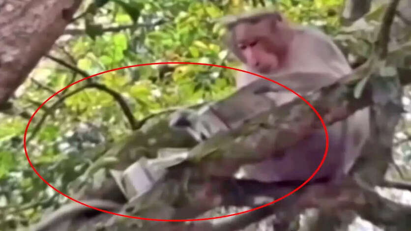 காசு...! பணம்..! துட்டு..! மணி.. மணி ! குரங்கு கையில் 500 ரூபாய் நோட்டுகள்..!