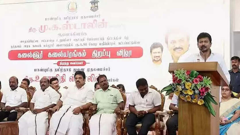 சென்னை நந்தனம் அரசு கலைக்கல்லூரியில் 4.80 கோடி ரூபாய் மதிப்பீட்டில் 1.000 இருக்கைகள் வசதியுடன் கட்டப்பட்டுள்ள ”கலைஞர் கலையரங்கத்தை” துணை முதல்வர் உதயநிதி ஸ்டாலின் ஞாயிற்றுக்கிழமை திறந்து வைத்தார்.