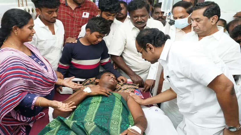 இந்நிலையில், மதுரை ராஜாஜி அரசு மருத்துவமனையில் சிகிச்சை பெற்று வரும் அவரை, நிதி மற்றும் மின்சாரத் துறை அமைச்சர் தங்கம் தென்னரசு நேரில் சந்தித்து, தமிழ்நாடு மின் உற்பத்தி மற்றும் பகிர்மான கழகம் சார்பாக ரூ.3 லட்சம், திராவிட முன்னேற்றக் கழகம் சார்பாக ரூ.2 லட்சம் நிதியுதவி வழங்கி ஆறுதல் கூறினார்.