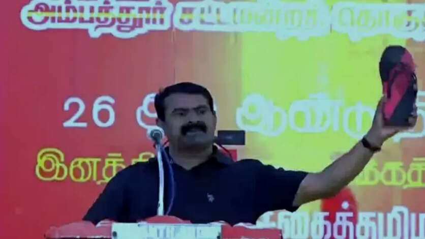 ''திமுக தான் பச்சை சங்கி''.. மேடையிலேயே செருப்பை கழற்றி விமர்சித்த சீமான்..