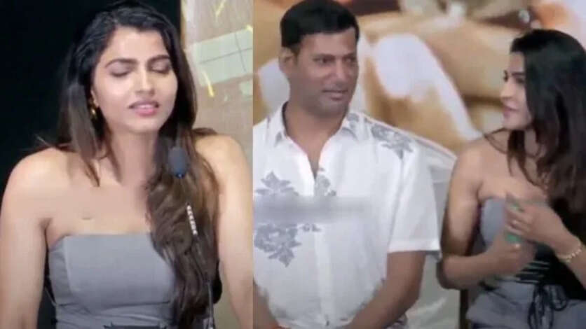 அவரை தொடர்ந்து விஷால் பேசுகையில், மேல இருக்கு சாமி, கீழே இருக்கு பூமி, எல்லோருக்கும் நன்றி, வணக்கம் என பேசி முடித்தார். தன்ஷிகா திருமணம் குறித்து அறிவித்த போது விஷால் சிரித்தபடியே வெட்கப்பட்டுக் கொண்டிருந்தார்.
