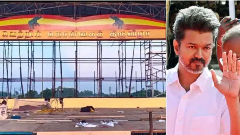 தமிழக வெற்றிக் கழகத்தின் முதல் மாநாடு நாளை(ஞாயிற்றுக்கிழமை) மாலை, விழுப்புரம் மாவட்டம் விக்கிரவாண்டியை அடுத்த வி.சாலை பகுதியில் நடைபெற உள்ளது. இதற்காக கடந்த 2 வாரங்களுக்கும் மேலாக மாநாட்டு பணிகள் நடைபெற்று வருகின்றன. தற்போது அந்த பணிகள் இறுதிக்கட்டத்தை எட்டியுள்ளது. நாளை காலையில் முழுமையாக முடிக்கும் வகையில் அனைத்துப் பணிகளும் விறு விறுப்புடன் நடைபெற்று வருகிறது.