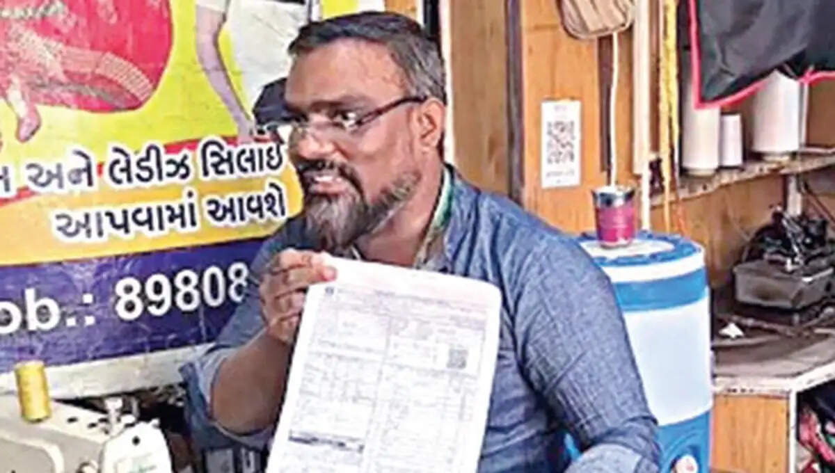 குஜராத் சோர் கலி பகுதியில் நியூ பேஷன் டெய்லர் என்ற பெயரில் தையல் கடை நடத்தி வருபவர் அன்சாரி. இவர் தனது கடையின் மின் கட்டண பில்லை, யுபிஐ மூலம் செலுத்தி வருகிறார்.இந்நிலையில் அண்மையில் இவருக்கு மின் கட்டண பில் வந்தபோது அதைப் பார்த்து அன்சாரி அதிர்ச்சி அடைந்தார். ரூ.86 லட்சத்தை மின் கட்டணமாக செலுத்துமாறு அவருக்கு பில் அனுப்பப்பட்டு இருந்தது.