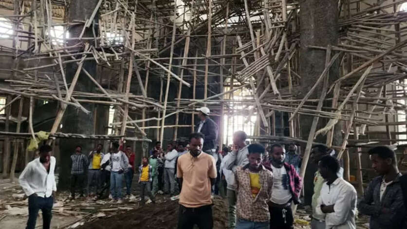 எத்தியோப்பியாவின் அம்ஹாரா பகுதியில் உள்ள தேவாலயம் ஒன்றில் கட்டுமான பணி நடந்து வருகிறது. இந்த தேவாலயத்தில் அதிகாலை நேரத்தில் வழிபாடு நடத்த மக்கள் கூடியிருந்தனர்.