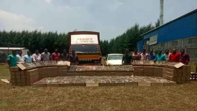போலி மதுபானம் தயாரிக்க பயன்படுத்திய இயந்திரம், காலிபாட்டில்கள் உள்ளிட்ட பொருட்களை போலீசார் பறிமுதல் செய்தனர். இதே இடத்தில் கடந்த சில மாதத்திற்கு முன்பு, சந்தன எண்ணெய் தயாரிப்பதிற்காக குவித்து வைக்கப்பட்டிருந்த டன் கணக்கிலான சந்தன மரக்கட்டை துகள்களை தமிழக வனத்துறையினர் பறிமுதல் செய்தனர் என்பது குறிப்பிடதக்கது.