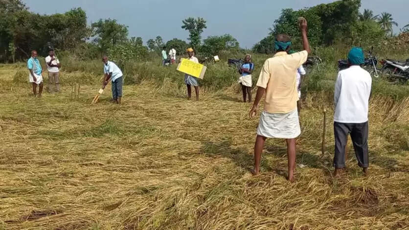 இழப்பீடு கேட்டு விளைநிலத்தில் கிரிக்கெட் விளையாடிய விவசாயிகள்!!