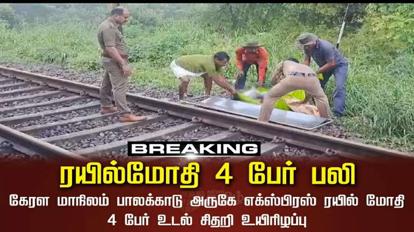 கேரள பாலக்காடு அருகே பாரதபுழா ஆற்றின் மேல் அமைந்துள்ள ஷோரனூர் ரயில் பாலத்தில் இன்று (நவம்பர் 2) மாலை தொழிலாளர்கள் 4 பேர் வேலை செய்து கொண்டிருந்தனர். இரண்டு பேர் ஆண்கள், இரண்டு பேர் பெண்கள். அவர்களில் தமிழர்களும் அடங்குவர். ரயில்வே தூய்மை பயணியாளர்கள் என்று கூறப்படுகிறது. இந்நிலையில் ரயில் பாலத்தில் தொழிலாளர்கள் நடந்து சென்று கொண்டிருந்த போது திடீரென கேரளா எக்ஸ்பிரஸ் ரயில் வேகமாக வந்துள்ளது.