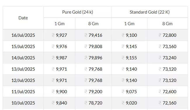 இன்று (ஜூலை16) சென்னையில் 22 கேரட் ஆபரணத்தங்கத்தின் விலை சவரனுக்கு ரூ.360 குறைந்து ரூ.72,800-க்கு விற்பனை செய்யப்படுகிறது. ஒரு கிராம் ரூ.45 குறைந்து ரூ.9,100-க்கு விற்கப்படுகிறது.