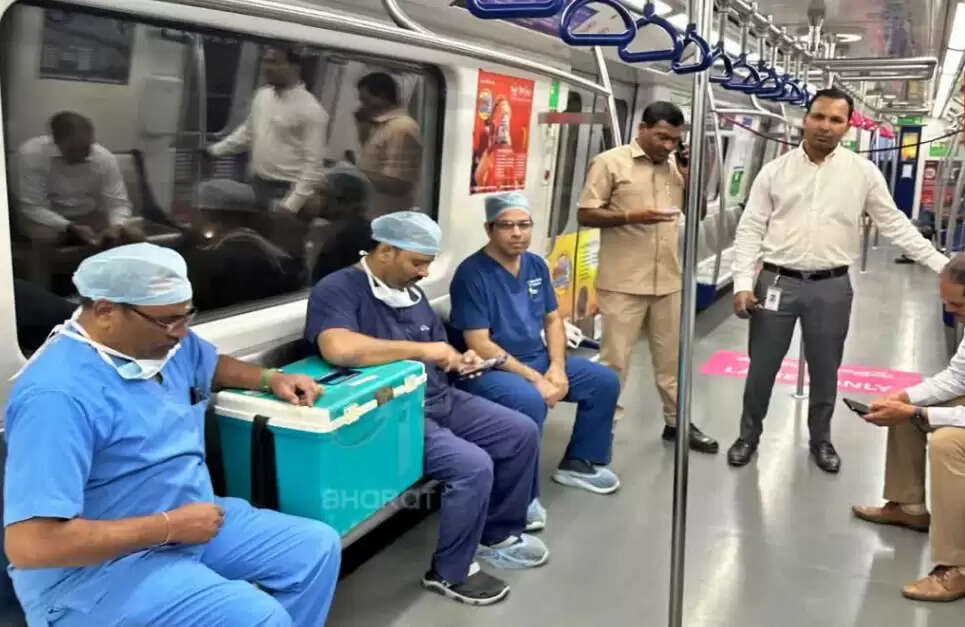 தொடர்ந்து மெட்ரோ ரயில் நிர்வாகமும், மருத்துவக் குழுவும் இணைந்து ரயில் பயணத்தைத் தொடங்கியது. மருத்துவர்கள் தங்கள் கையில் குளிரூட்டப்பட்ட பாதுகாப்புப் பெட்டியினுள் வைத்திருந்த இதயத்துடன் மெட்ரோவில் பயணம் செய்தனர்.