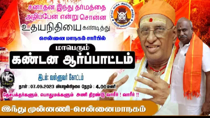 தமிழ்நாட்டில் இன்று அமைச்சா் உதயநிதி ஸ்டாலினை கண்டித்து ஆா்ப்பாட்டம் - இந்து முன்னணி..!