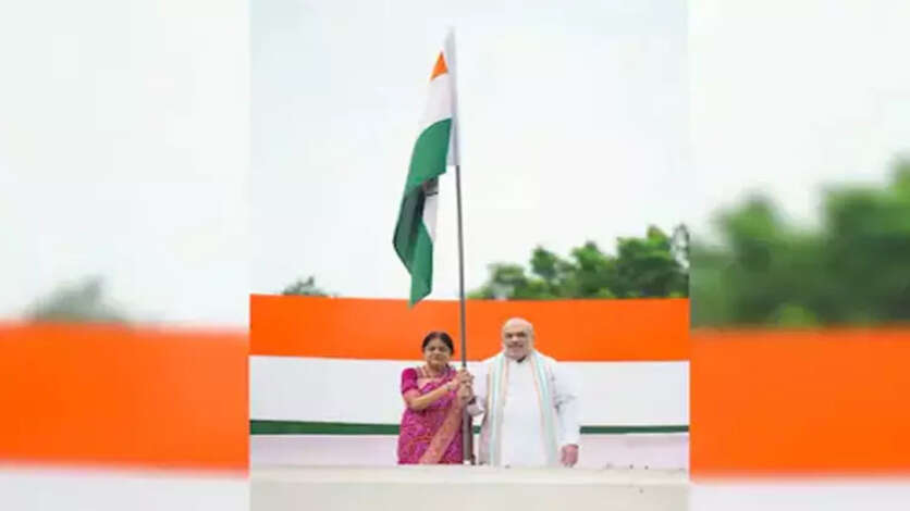 வீட்டில் தேசிய கொடி ஏற்றினார் உள்துறை மந்திரி அமித்ஷா..!