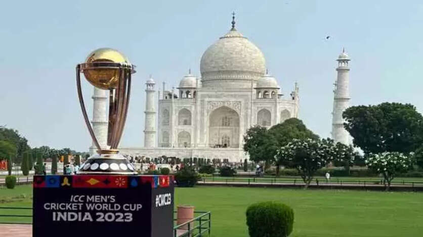 தாஜ்மஹாலில் ஜொலிக்கிறது ஐசிசி உலகக் கோப்பை டிராபி..!