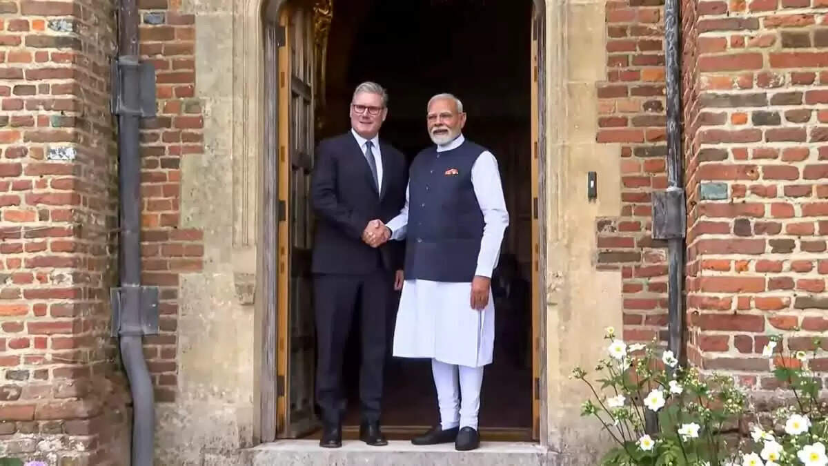பிரதமர் நரேந்திர மோடி 2 நாட்கள் பயணமாக லண்டன் சென்றுள்ளார் . லண்டன் வந்தடைந்த அவரை, இங்கிலாந்தை சேர்ந்த உயர் அதிகாரிகள் வரவேற்றனர். இந்த நிலையில், பிரிட்டன் பிரதமர் கியர் ஸ்டார்மரை இந்திய பிரதமர் நரேந்திர மோடி சந்தித்தார். அப்போது இரு தரப்பு உறவுகள், பிராந்திய மற்றும் சர்வதேச முக்கியத்துவம் வாய்ந்த பிரச்சினைகள் குறித்தும் விரிவாக ஆலோசனை நடத்தினர்.