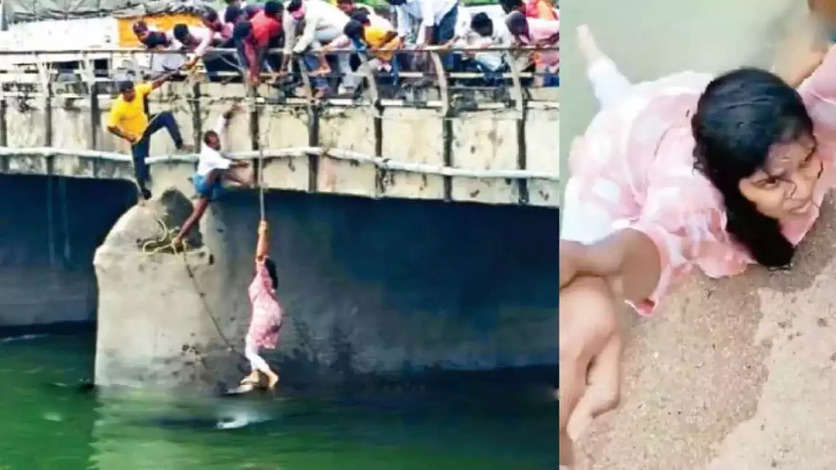 தண்ணீரில் விழுந்த பெண்ணுக்கு காயங்கள் ஏதும் இல்லாததால் அனைவரும் நிம்மதி அடைந்தனர். இந்த சம்பவம் அங்கு பரபரப்பை ஏற்படுத்தியது.