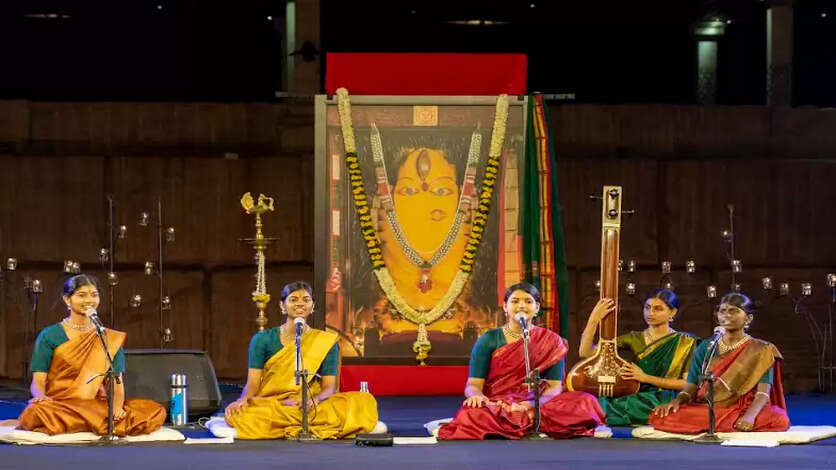 தெய்வீகமான பெண் தன்மையைக் கொண்டாடும் வகையில் புராஜெக்ட் சமஸ்கிருதி மாணவர்கள் “ஜெகதீஸ்வரி பிரம்ம ஹ்ரிதயேஸ்வரி” என்கிற பாடலை முதல் பாடலாகப் பாடி நிகழ்ச்சியைத் தொடங்கினர். தொடர்ந்து இசைக்கப்பட்ட இசையும் பாடல்களும் அரங்கில் இருந்த பக்தர்களைப் பரவசத்தில் ஆழ்த்தியது.