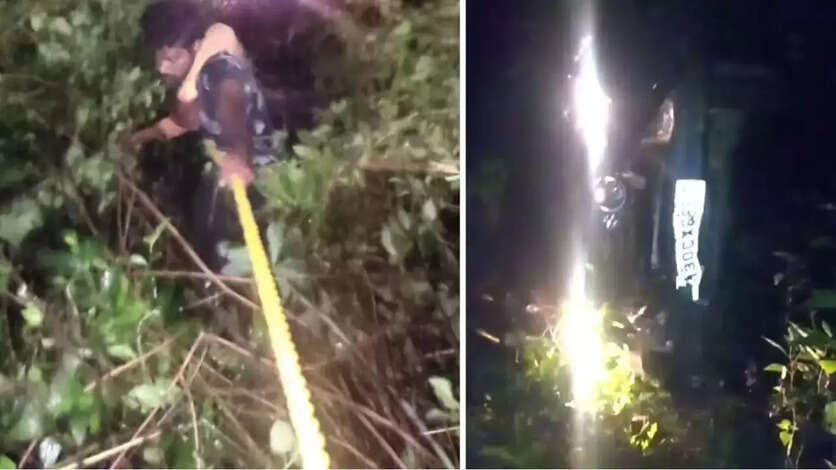 அப்போது நிலை தடுமாறி சாலையோர திட்டை இடித்துக்கொண்டு, 50 அடி பள்ளத்தில் உருண்டு கார் விழுந்தது. இதில் காரில் இருந்த விக்னேஷ் படுகாயமும் மற்ற இருவருக்கும் லேசான காயமும் ஏற்பட்டது. இதையடுத்து ராஜ்குமார், 108 ஆம்புலன்சுக்கு தகவல் தெரிவித்தார்.