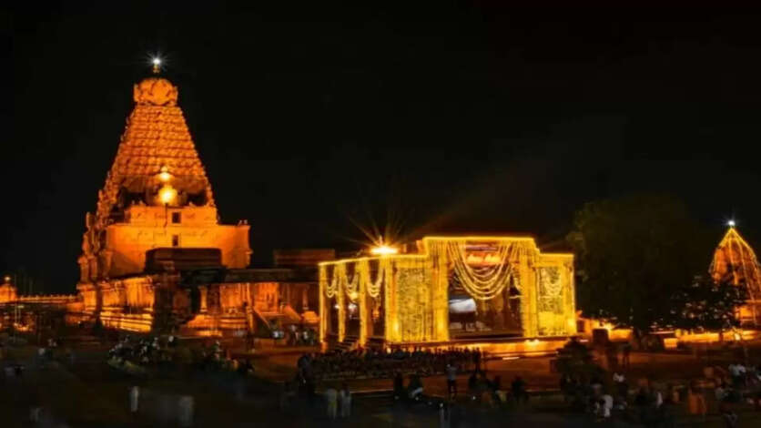 சூப்பரா இருக்கு..! மின்னொளியில் ஜொலிக்கும் தஞ்சை பெரிய கோவில்..!