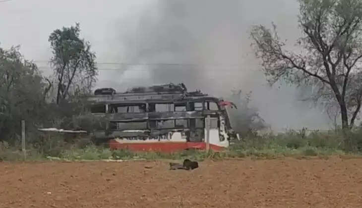ஜெய்ப்பூரை நோக்கி ஒரு தனியார் ஆம்னி பஸ் பயணித்தது. அந்த பஸ்சில் 15க்கும் மேற்பட்டோர் இருந்தனர். பஸ்சின் மேல்தளத்தில் அதிக அளவில் பயணப் பொதிகள் வைக்கப்பட்டிருந்தன. பஸ் நெடுஞ்சாலையில் சென்றுகொண்டிருந்தபோது தாழ்வாக தொங்கியிருந்த மின்கம்பி திடீரென அறுந்து பஸ்சின் மீது விழுந்தது. உடனே பஸ் முழுவதும் தீப்பற்றியது.