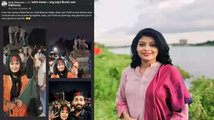 உயிரிழந்த சாரா ரஹனுமா, கடந்த செவ்வாய்கிழமை (ஆக.,27) இரவு பேஸ்புக்கில் இரு பதிவுகளை போட்டிருந்தார். அதில், ‘மரணத்திற்கு இணையான வாழ்க்கையை வாழ்வதை விட சாவதே மேல்,’ என்று கருத்து பதிவிட்டிருந்தார்.