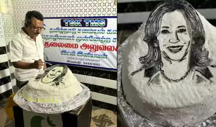 50 கிலோ இட்லியில் கமலா ஹாரிஸ் உருவம்..!