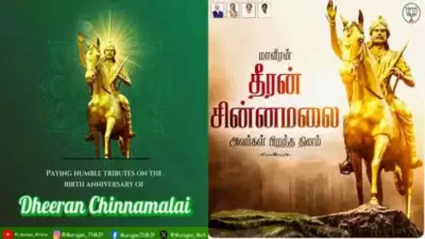 மத்திய அமைச்சர் எல்.முருகன் விடுத்துள்ள வாழ்த்து செய்தியில், இந்திய விடுதலைப் போரில் ஈடுபட்ட மாவீரரும், கொங்கு நாட்டைச் சேர்ந்த ‘தீர்த்தகிரிச் சர்க்கரை’ என்று புகழப்பெற்றவருமான, அய்யா தீரன் சின்னமலை அவர்களின் பிறந்த தினம் இன்று.