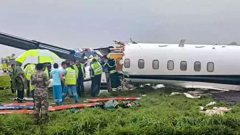 Cctv footage of charter flight skid on runway 27 at mumbai international airport. Three people injured in an accident #mumbai #mumbaiairport pic.twitter.com/Ad54IUCZ9A