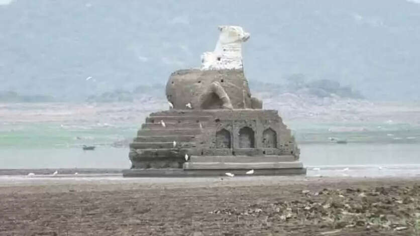 பிப்ரவரி 4-ம் தேதி 70 அடியாக இருந்த அணையின் நீர்மட்டம், பிப்ரவரி 5-ம் தேதி 69 அடியாக குறைந்ததால் நந்தி சிலையின் தலை பகுதி வெளியே தெரிய தொடங்கியது. அணைக்கு வரும் நீரின் அளவை காட்டிலும் குடிநீர் தேவைக்காக திறக்கப்படும் நீரின் அளவு அதிகமாக இருந்ததால் மேட்டூர் அணையின் நீர்மட்டம் 50 அடியில் இருந்து 49 அடியாக சரிந்தது . இதனால் பண்ணவாடி நீர் தேக்க பகுதியில் மூழ்கி இருந்த 20 அடி உயரம் கொண்ட நந்தி சிலை அதன் பின்புறம் 10 அடி உயரம் கொண்ட ஜலகண்டேஸ்வர ஆலயத்தில் கோபுர முகப்புப் பகுதி வெளியே தெரிந்தது.